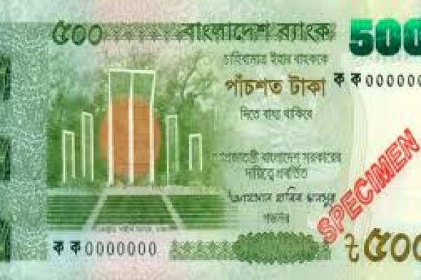 নতুন সিরিজের আরও একটি নোট বাজারে ছাড়ছে বাংলাদেশ ব্যাংক। দেশের ঐতিহাসিক ও প্রত্নতাত্ত্বিক স্থাপত্যকে থিম করে তৈরি বাংলাদেশের ঐতিহাসিক এবং প্রত্নতাত্ত্বিক স্থাপত্য শীর্ষক নতুন ডিজাইন ও সিরিজের ৫০০ টাকা মূল্যমানের নোট আগামী বৃহস্পতিবার (৪ ডিসেম্বর) প্রথমবারের মতো প্রচলনে আসছে।বাংলাদেশ ব্যাংক জানায়, গভর্নর ড. আহসান এইচ মনসুরের স্বাক্ষরযুক্ত এই নতুন নোটটি ৪ ডিসেম্বর প্রাথমিকভাবে কেন্দ্রীয় ব্যাংকের মতিঝিল অফিস থেকে ইস্যু করা হবে। পরে ধাপে ধাপে বাংলাদেশ ব্যাংকের অন্যান্য অফিস থেকেও বাজারে ছাড়া হবে।বাংলাদেশ ব্যাংকের পাঠানো এক সংবাদ বিজ্ঞপ্তিতে বলা হয়, নতুন ৫০ টাকার নোটে থাকছে শহীদ মিনার ও সুপ্রিম কোর্ট। ১৫২ মি.মি. ৬৫ মি.মি. আকারের নতুন ৫০০ টাকার নোটের সম্মুখভাগে রয়েছে ঢাকার কেন্দ্রীয় শহীদ মিনারের ছবি। পেছনের অংশে মুদ্রিত হয়েছে বাংলাদেশ সুপ্রিম কোর্টের ছবি।