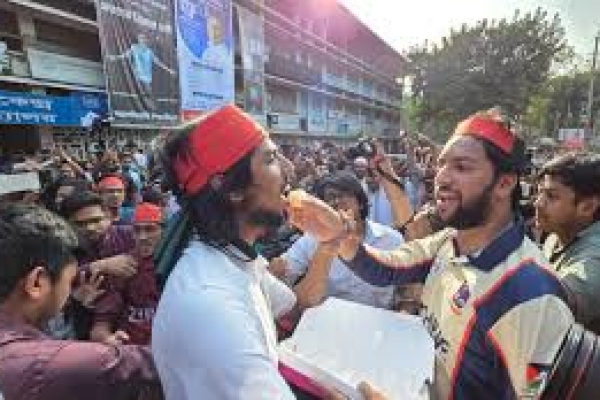 শেখ হাসিনার মৃত্যুদণ্ডের রায়ে ট্রাইব্যুনালের সামনে মিষ্টি বিতরণ