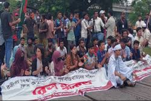স্থায়ী ক্যাম্পাসের দাবিতে সিরাজগঞ্জের উল্লাপাড়ায় রেলপথ অবরোধ করেছে রবীন্দ্র বিশ্ববিদ্যালয়ের শিক্ষার্থীরা। এতে ঢাকা-উত্তরপশ্চিমাঞ্চলে ট্রেন চলাচল বন্ধ রয়েছে।আজ বুধবার সকাল ৯টার দিকে রেলপথ অবরোধ করে তারা।উল্লাপাড়া রেলওয়ে স্টেশনের স্টেশন মাস্টার মো. মাসুম আলী বিষয়টি আমাদের সময়কে নিশ্চিত করেছেন ।তিনি বলেন, সকাল ৯টার দিকে শিক্ষার্থীরা উল্লাপাড়া স্টেশনের পাশে রেলপথ অবরোধ করে। এতে আপাতত রেল চলাচল বন্ধ রয়েছে। ফলে ঢাকা থেকে ছেড়ে আসা ধূমকেতু এক্সপ্রেস ট্রেনটি উল্লাপাড়ার আগে জামতৈল স্টেশনে এবং ঢাকাগামী সিল্কসিটি এক্সপ্রেস ট্রেনটি মোহনপুর স্টেশনে অবস্থান করছে।তিনি আরও বলেন, স্বাভাবিকভাবেই এতে ট্রেনের শিডিউল বিপর্যয় হবে। তবে অবরোধের কারণে কয়টি ট্রেনের শিডিউলে বিপর্যয় ঘটতে পারে।স্টেশন সূত্রে জানা যায়, এই রেলপথ দিয়ে প্রতিদিন ৩০ টি ট্রেন আপ-ডাউন করে থাকে। এর বাইরে ২-৩টি চলে মালবাহী ট্রেন। এর মধ্যে ১০টা ট্রেনের যাত্রাবিরতি রয়েছে উল্লাপাড়া স্টেশনে।