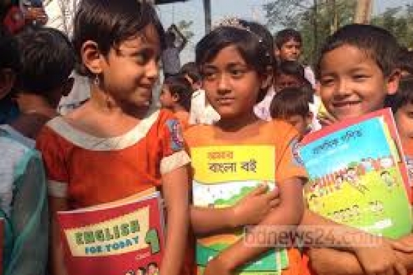 নতুন বই নিয়ে হাসিমুখে বাড়ি ফিরল শিশুরা